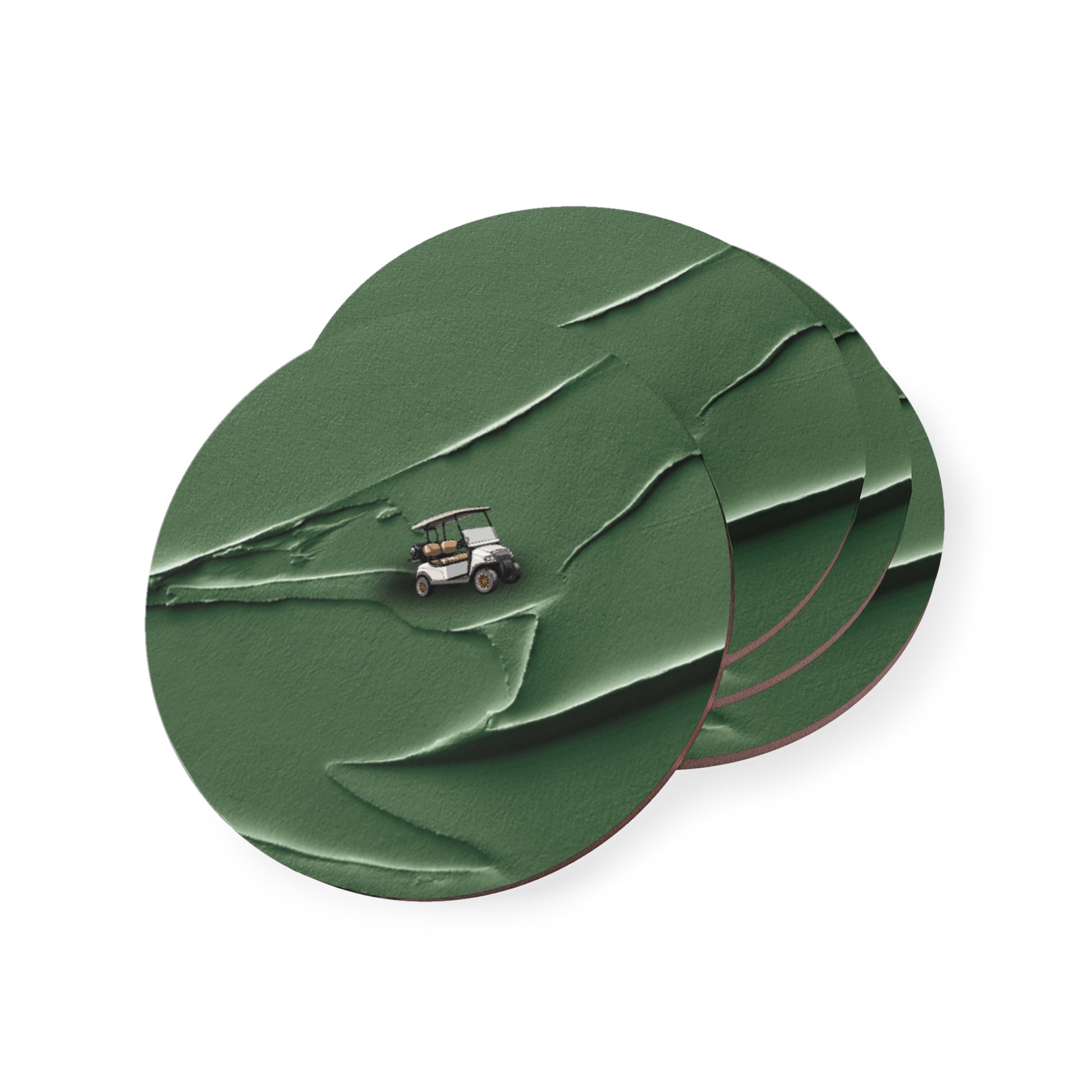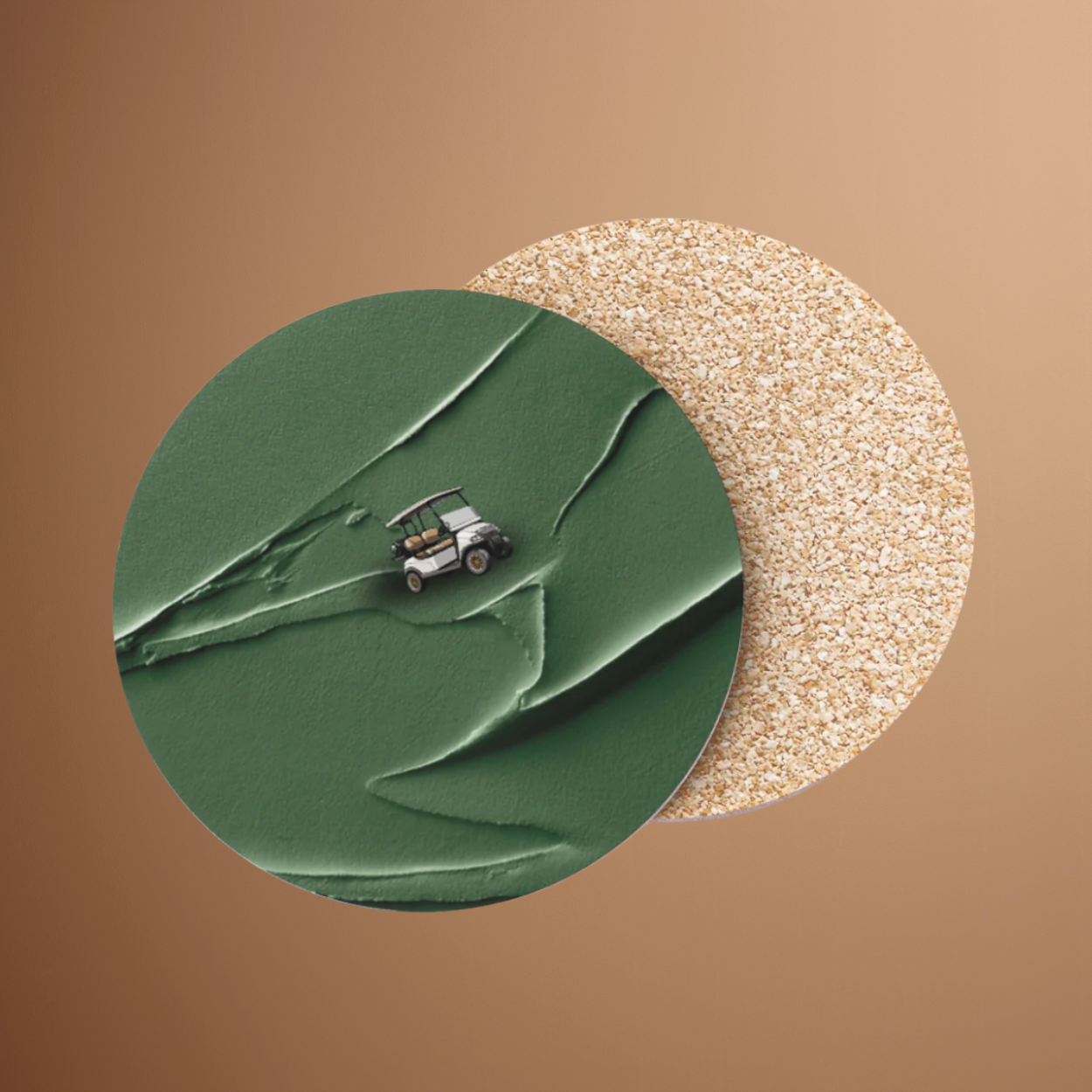 Elevate your gatherings with coasters that combine style and functionality. Showcasing a golfer's silhouette on a textured green background, these pieces are perfect for celebrating your love of the game.