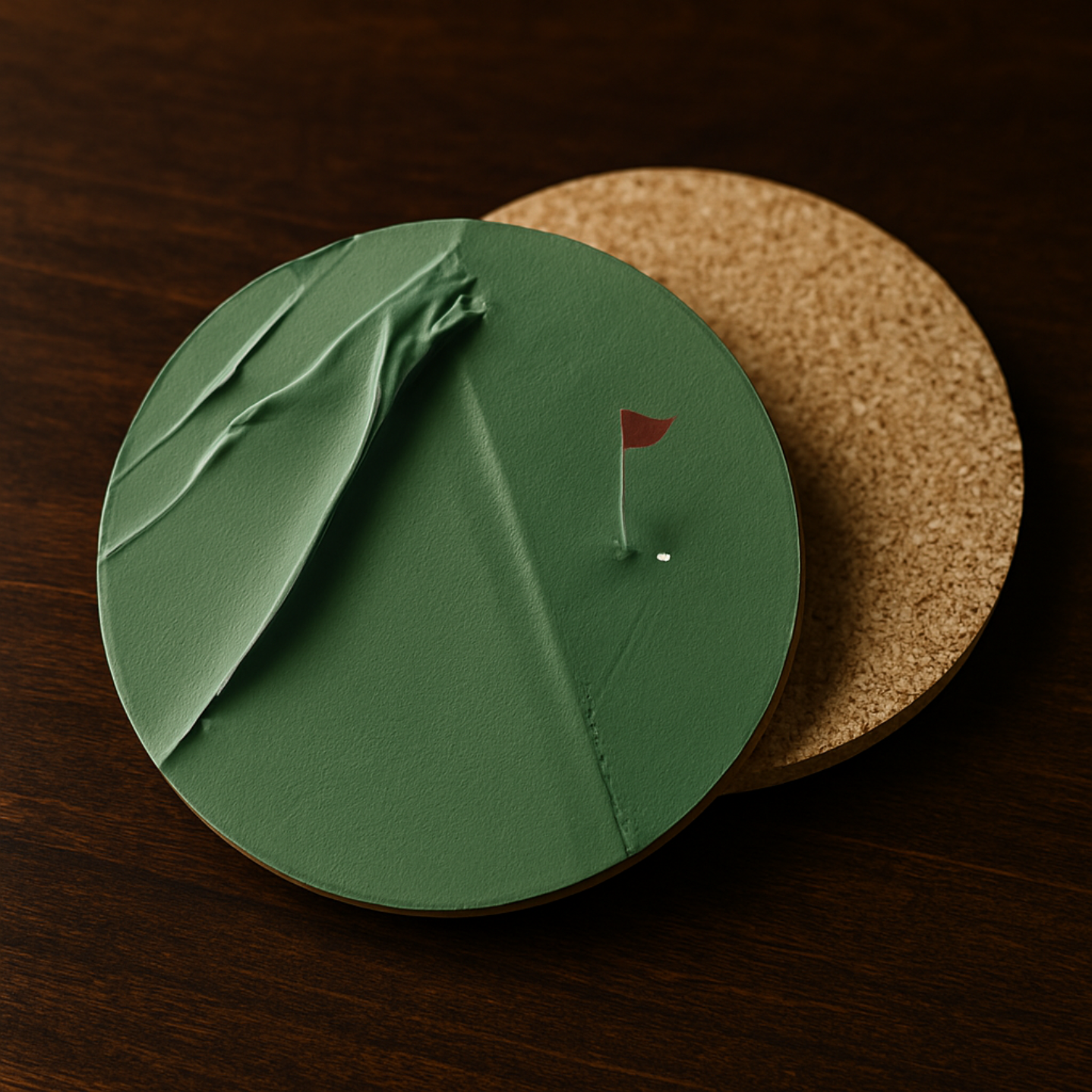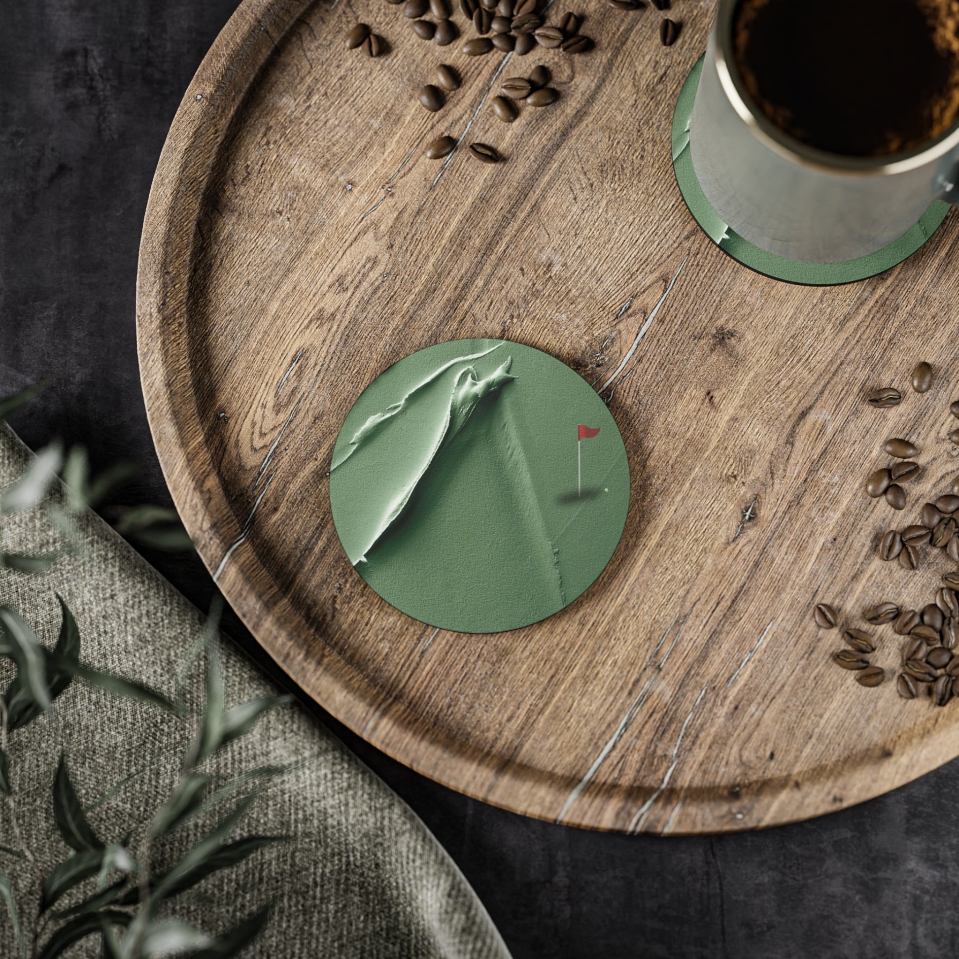 Elevate your gatherings with coasters that combine style and functionality. Showcasing a golfer's silhouette on a textured green background, these pieces are perfect for celebrating your love of the game.