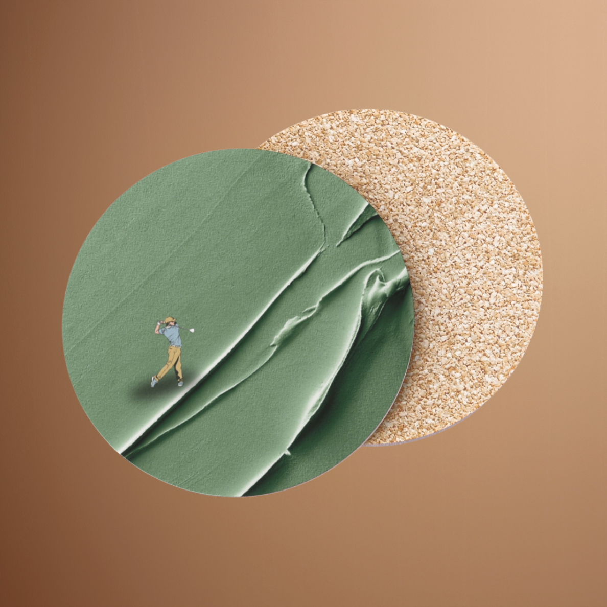 Elevate your gatherings with coasters that combine style and functionality. Showcasing a golfer's silhouette on a textured green background, these pieces are perfect for celebrating your love of the game.